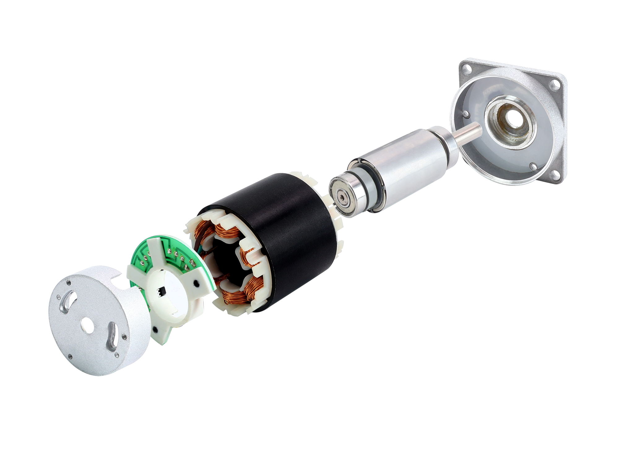 One major advantage is efficiency, as these motors can continuously control the maximum rotational force (torque). In contrast, brushed motors only reach their maximum torque at certain points during rotation. In order for a brushed motor to deliver the same torque as a brushless motor, larger magnets must be used. For this reason, even small BLDC motors can deliver considerable power.