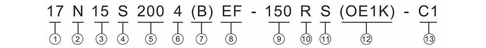| ⑫ Encoder Option | OE = Optical Encoder, 1K=1000PPR(4000CPR) ME = Magnetic Encoder, 1K=1000PPR(4000CPR) P = Manual Knob B = Brake X = Rear Shaft R = Encoder Ready |