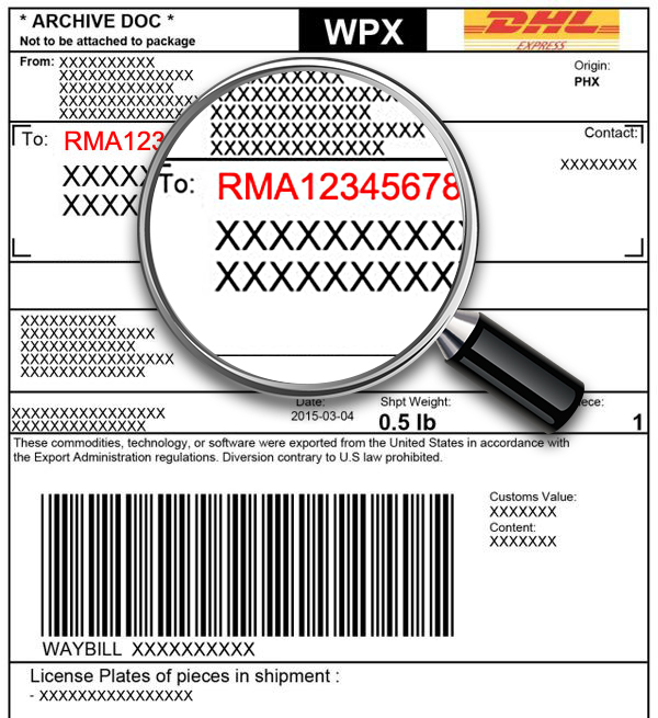 To avoid missing the RMA number, please add the RMA number as the recipient. For example, if the RMA number is RMA123456789, the following is the correct way to add the number.